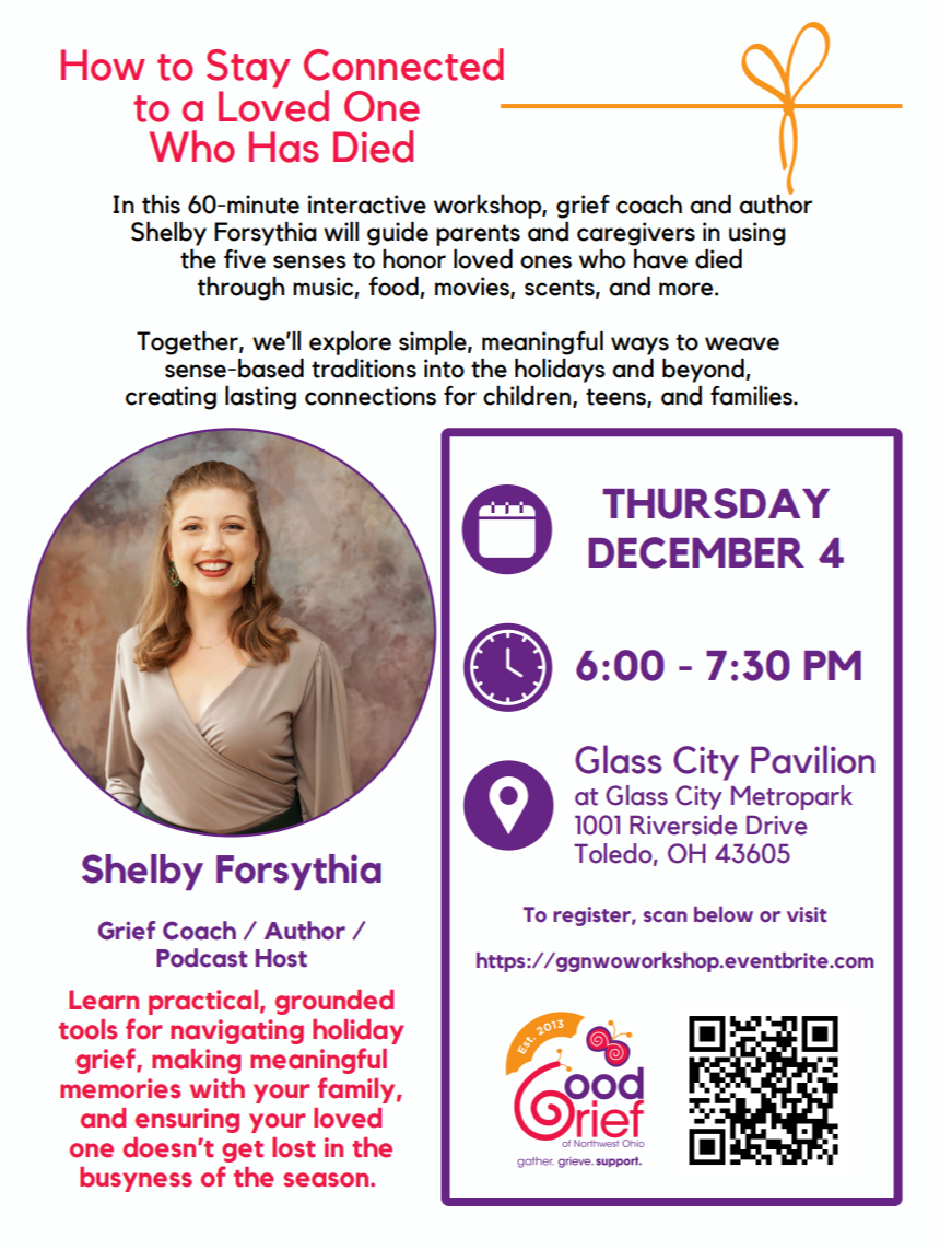 The intersection of grief and the holidays can be overwhelming, but our senses hold powerful keys to memory. In this 60-minute interactive workshop, I’ll guide parents and caregivers in using the five senses to honor loved ones who have died—through music, food, movies, scents, and more. Together, we’ll explore simple, meaningful ways to weave sense-based traditions into the holidays and beyond, creating lasting connections for children, teens, and families.